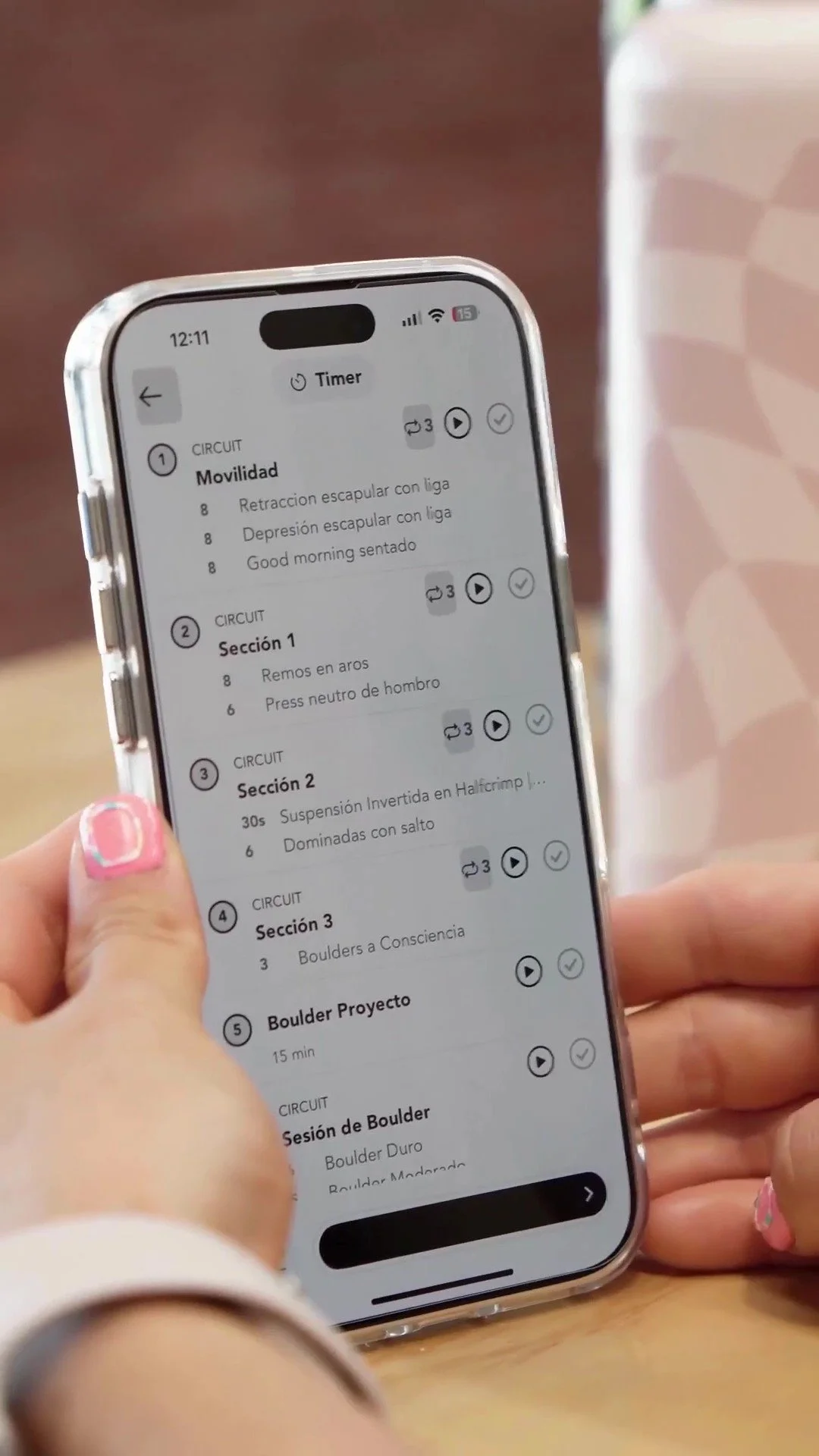 Cada sesión tiene una estructura lógica y práctica dentro de la app. Organizada en circuitos, con descanso indicados.